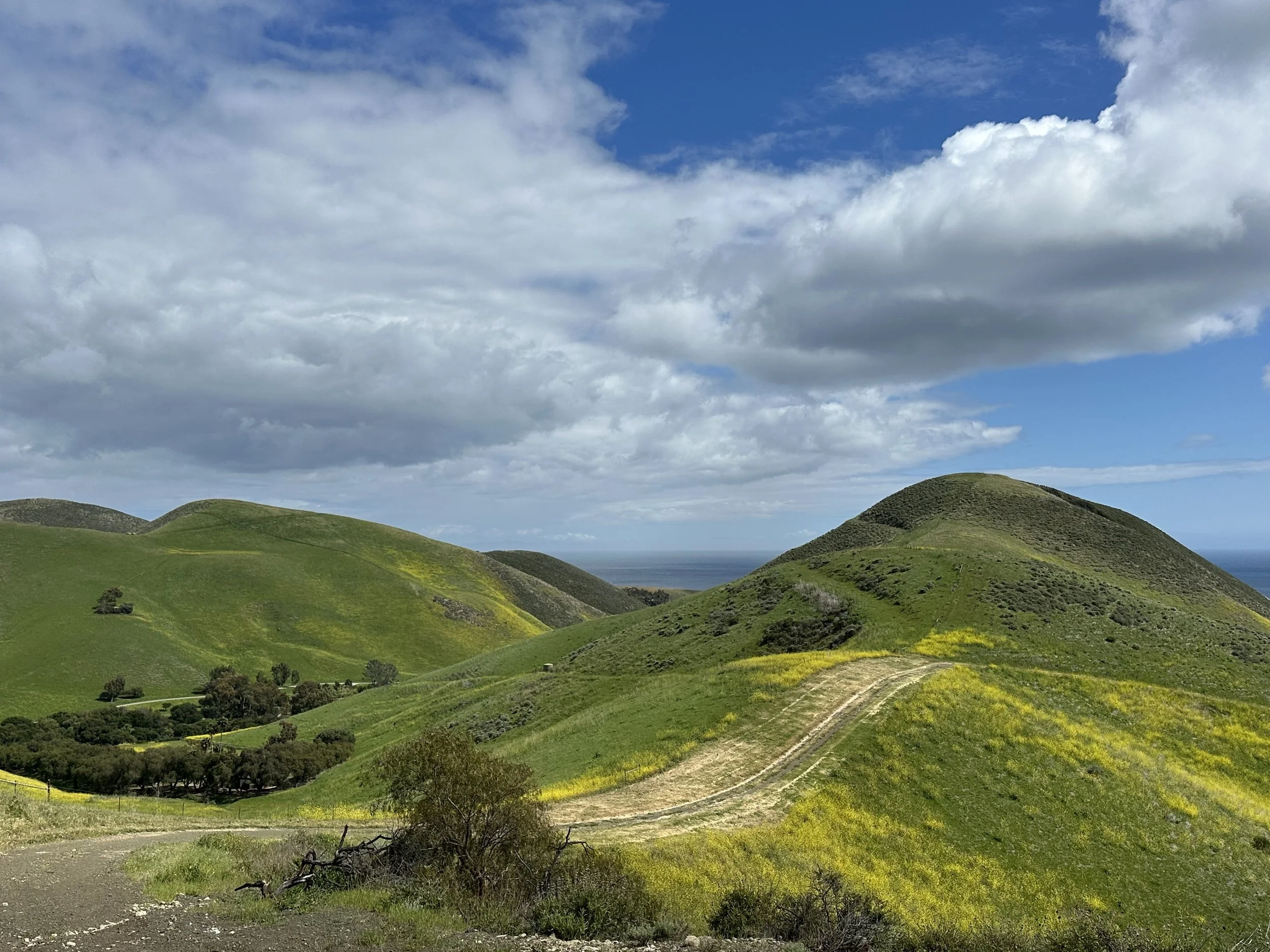 This week has galloped by so swiftly I can barely process all the input. Sometimes the heaviness and sadness bow me down. And yet, in joyful contradiction, the miracles are lifting me. One day the chatter and laughter of the women made a kind of music when we hiked on a bluff above the sea. Yesterday I got back on my trusty bicycle and my legs remembered what to do. Someone I know is practicing a new song, bread is baking in the oven, and a white moon is perched in the branches of an oak. These hills, the shine of sea, a graceful hawk—it all feels like a prayer sometimes.